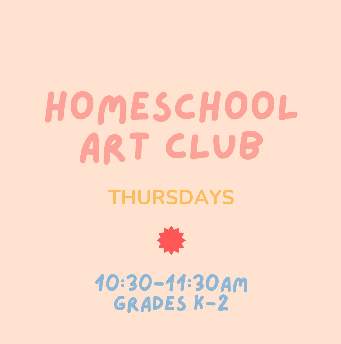 Homeschool Art Club (K-2nd): Thursdays 10:30-11:30am