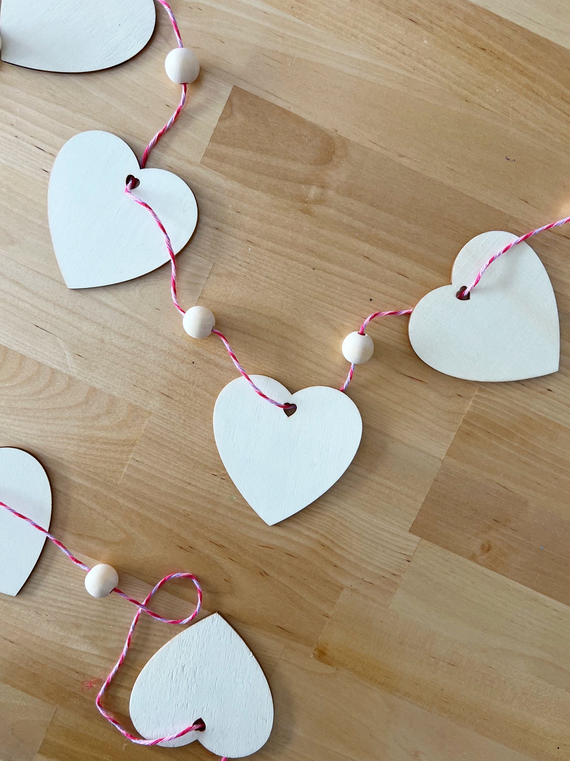 With this simple garland kit, kids will love turning blank wood hearts into Valentine's magic. Use the included paints, gems, felt and sparkly hearts to add pizzaz. Once decorated, string the hearts and wood beads onto the string. Hang across a window, fireplace mantel or wall!