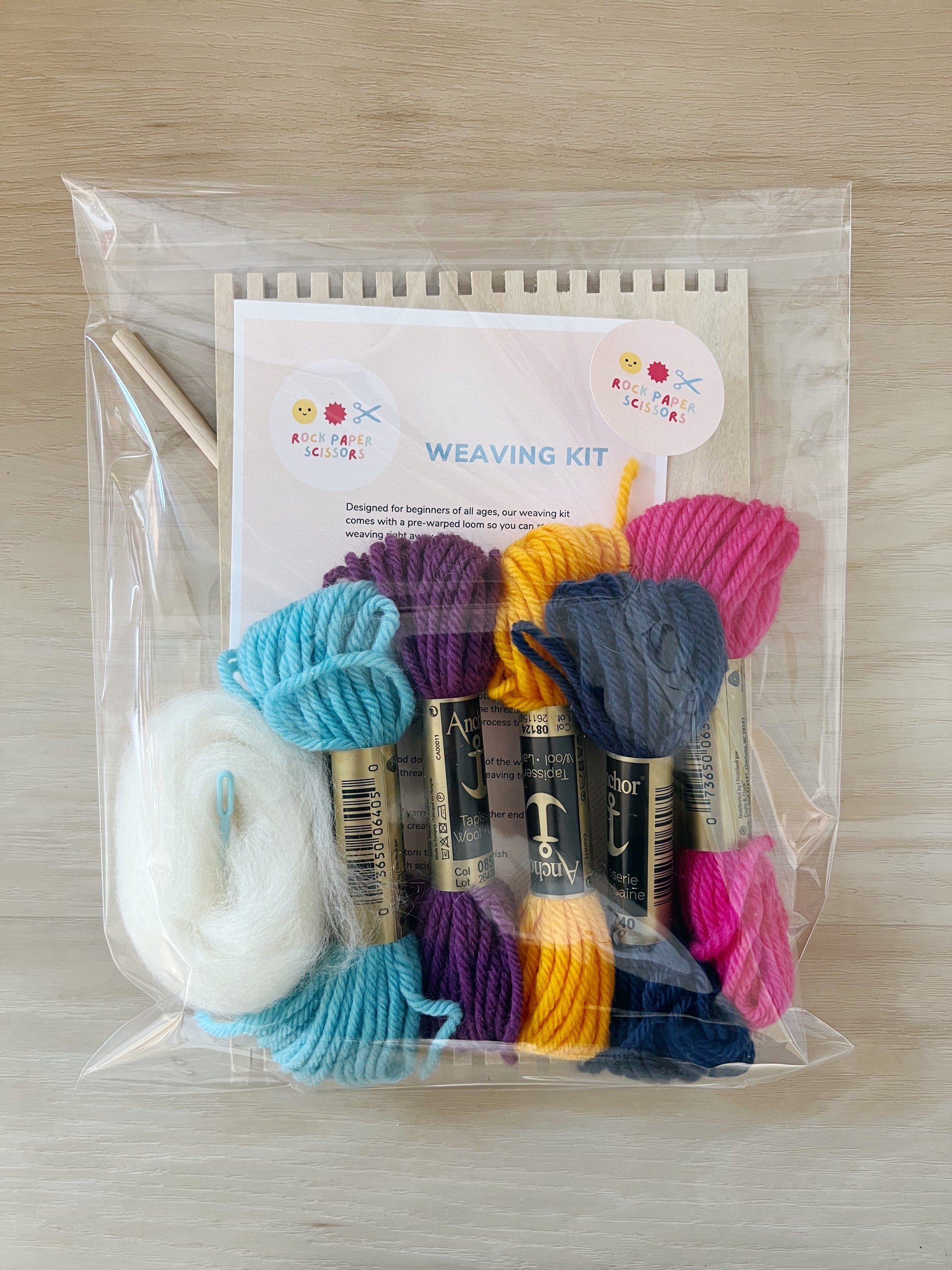 This weaving kit has everything you need to introduce the joy of weaving. A perfect activity for a rainy day or any day, weaving helps develop concentration and fine motor skills. Plus the finished project looks great hanging on a wall!